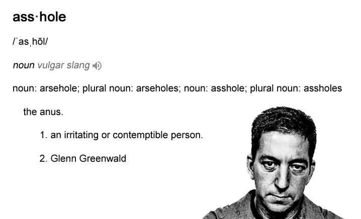Greenwald and his ilk want to live in a very small, self-contained world. They either collect and flatter people they convince to join them unconditionally, or go to war with anyone who disagrees with them, in order to "disappear" the enemy from the snow globe paradise they believe the earth is supposed to be.