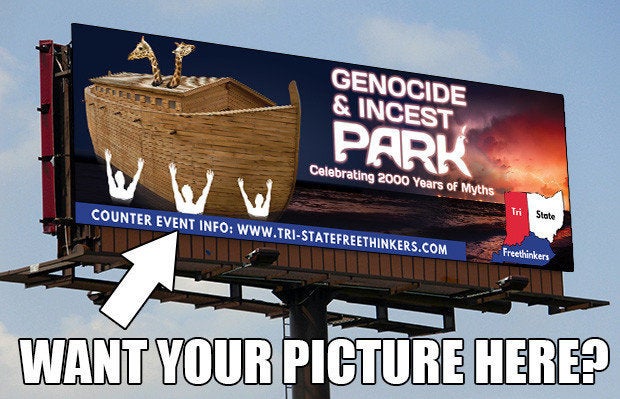 The Tri-State Free Thinkers wanted to put up this billboard nearby, but no Billboard company would do it!