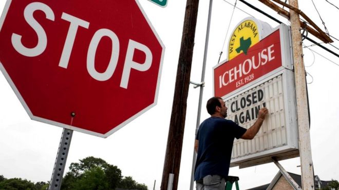 The surge in cases in southern states comes after businesses were allowed to re-open in recent weeks. On Saturday, Florida reported more than 9,500 new cases, up from almost 9,000 on Friday, the previous record. The spike has led state officials to tighten restrictions on business again - as Texas also did on Friday.