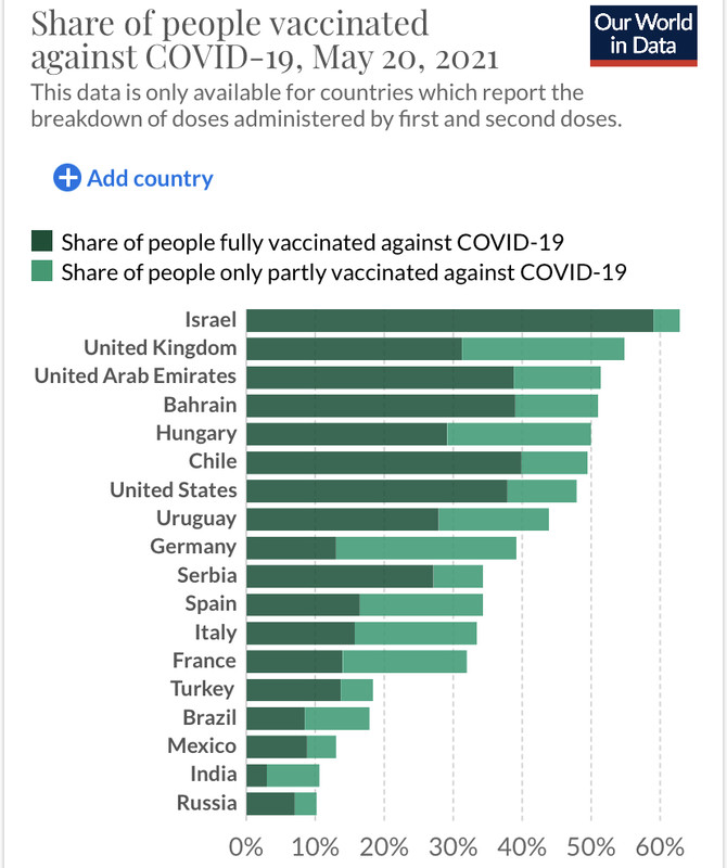 Yet even Israel hasn't reached 70% for single doses yet.