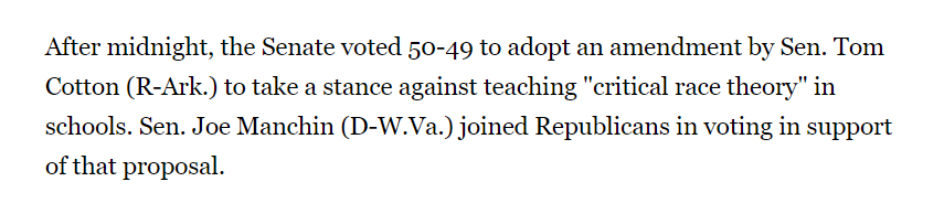 Senate passed Cotton amendment to ban federal dollars from funding Critical Race Theory in schools