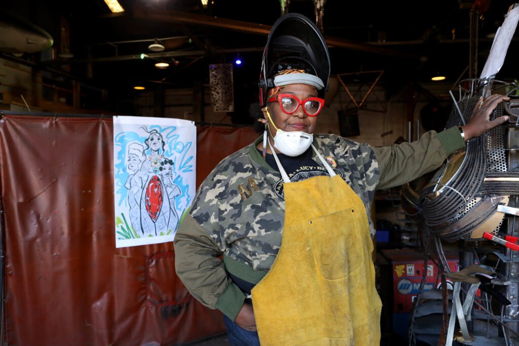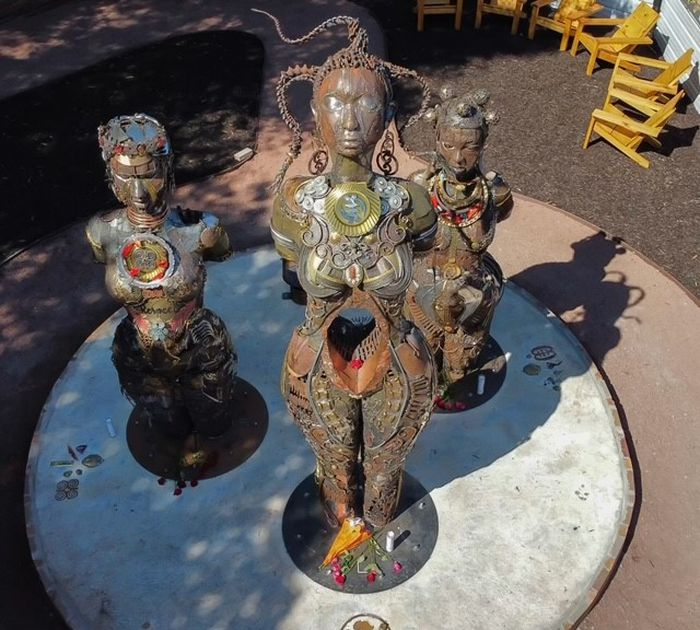 The statues stand almost 15 feet high and were welded together by Montgomery artist and activist Michelle Browder. They were unveiled Friday afternoon at a ceremony at the More Up Campus on Mildred Street.