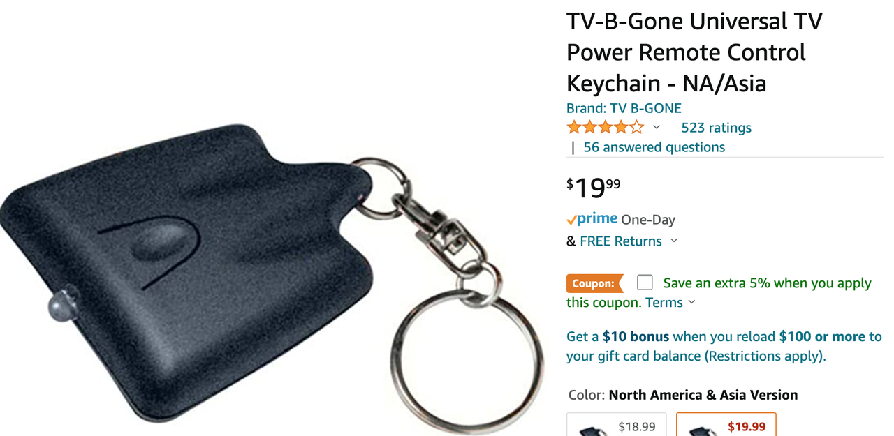 (1,364 posts)Also, you can buy universal clickers at Amazon that will turn the TV off or change the channel...lol.