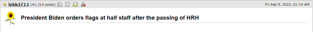 Related: Editorials & Other Articles, Issue Forums, Alliance Forums, Region ForumsPresident Biden orders flags at half staff after the passing of HRH