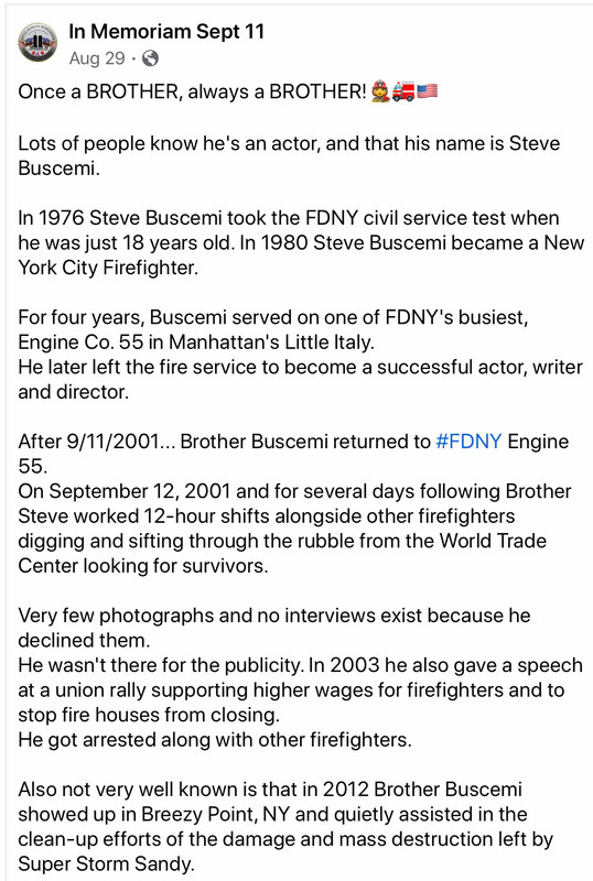 9/11. Story much told but much respect. Didn't have to. Steve Buscemi. (Original Post)