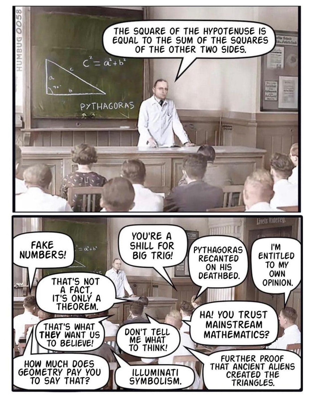 (7,865 posts)The sum of the square roots of any two sides of an isosceles triangle is equal to the square root of the remaining side.