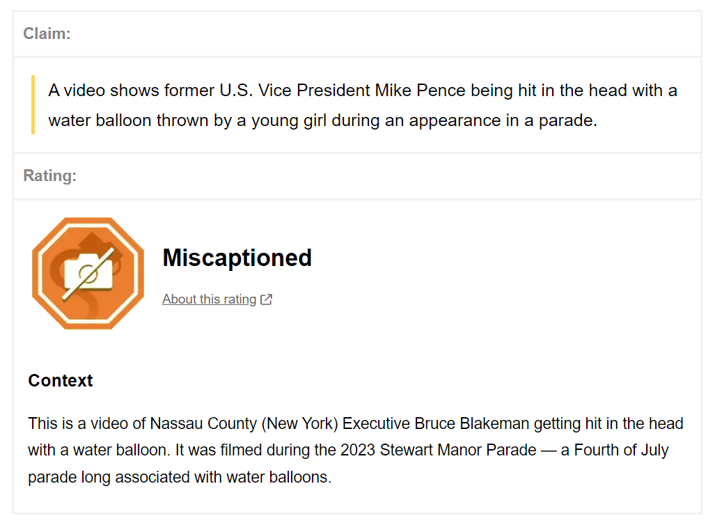 I think we can agree that falsehoods, regardless of how trivial (Pence falsely identified as man hit in head with balloon) should be discouraged.