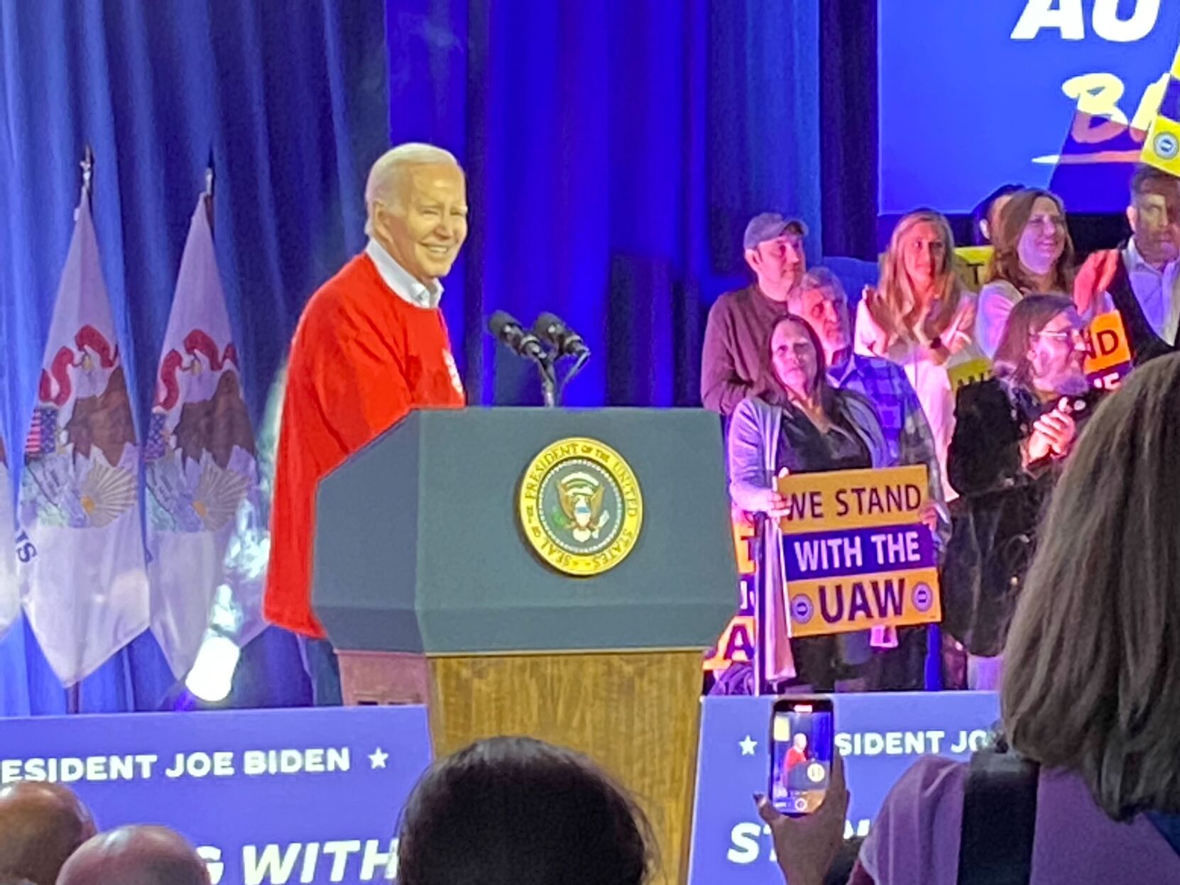 Local UAW President rallies supporters as Biden visits the Stateline, celebrating the tentative deal between the union and Stellantis, bringing back the Belvidere Assembly Plant.