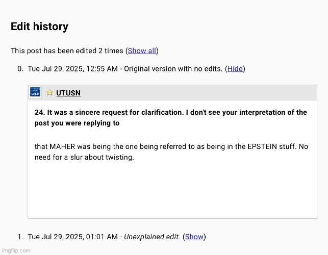 (6,916 posts)More interested in what Maher may have done at the playboy mansion than if Maher is in the Epstein files. But nice try twisting what I said.