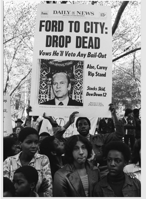 Mr. Ford, on Oct. 29, 1975, gave a speech denying federal assistance to spare New York from bankruptcy. The front page of The Daily News the next day read: FORD TO CITY: DROP DEAD.