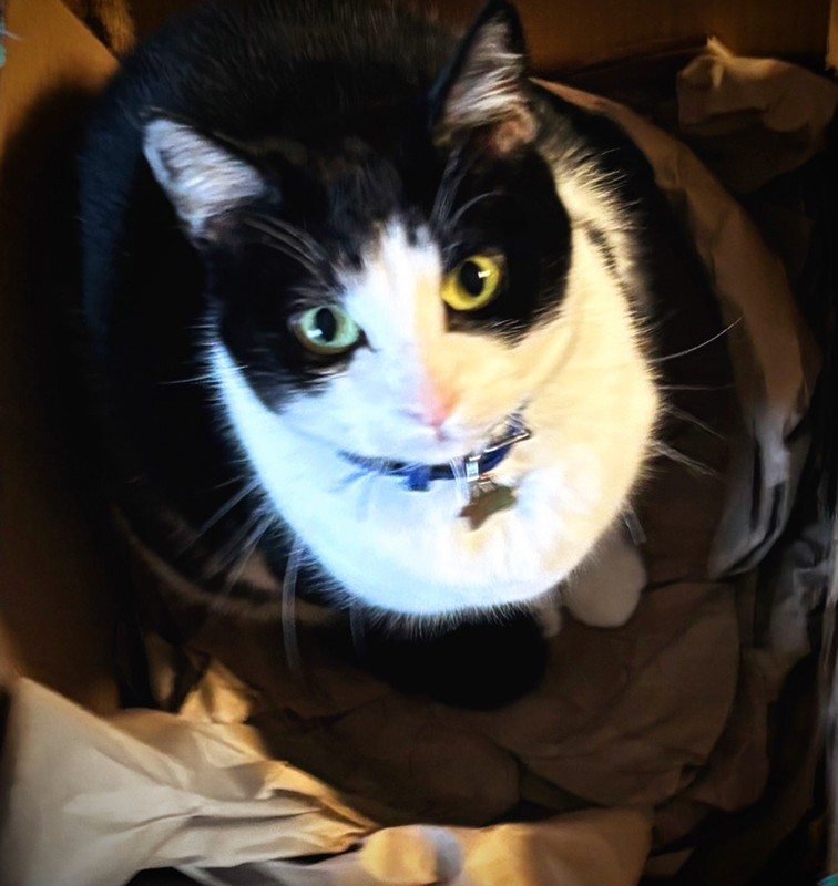 (13,330 posts)With my deadly cute most clever subversive feline, who can disarm people with just his eyes: code name Othello.