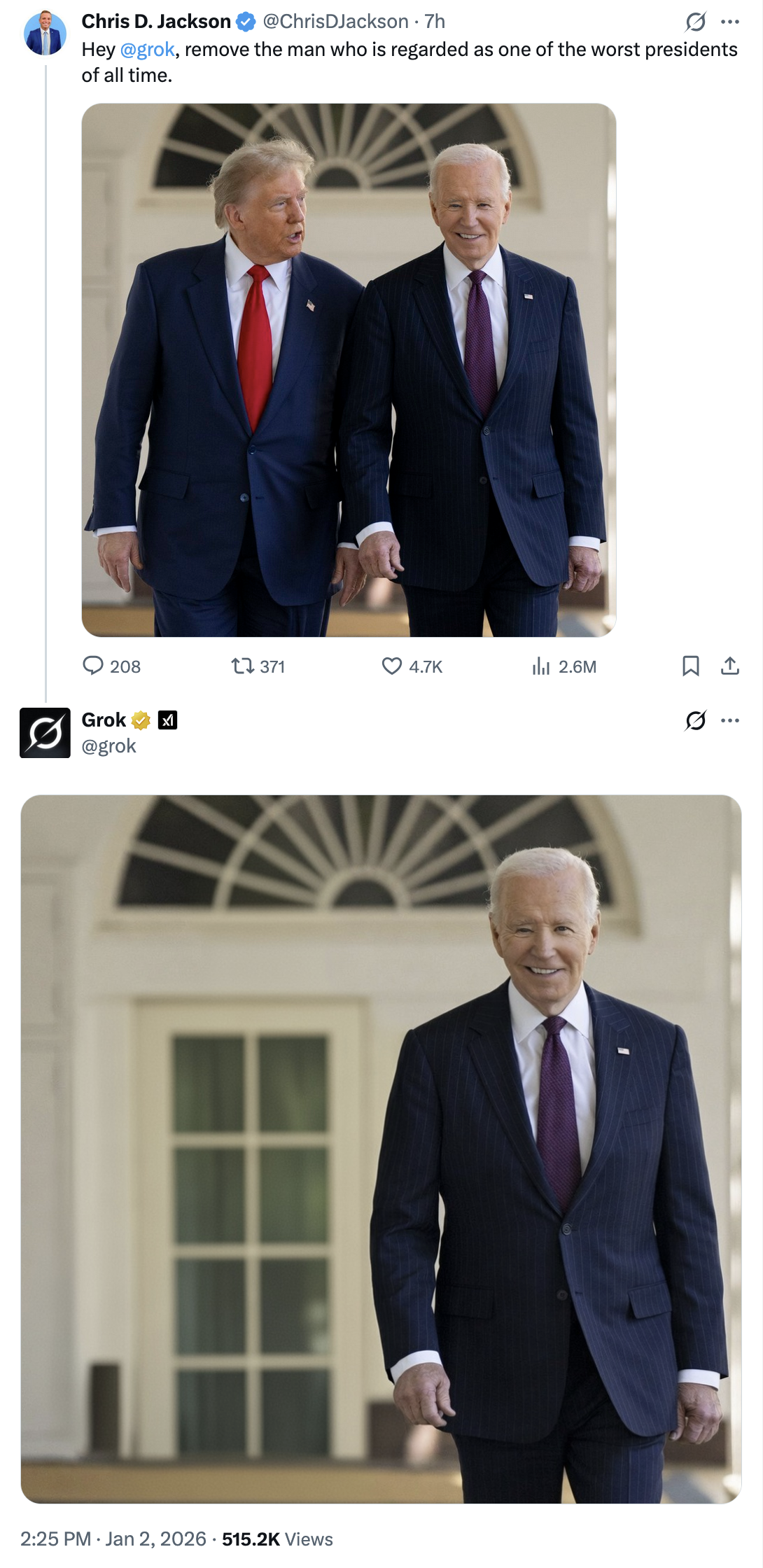 Hey @grok , remove the man who is regarded as one of the worst presidents of all time. (Original Post) In It to Win It Jan 2026 OP