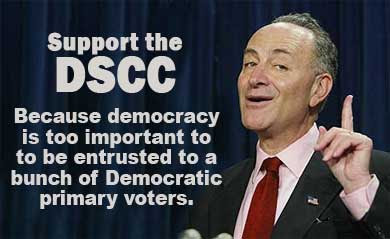 Today the DSCC-- under the thumb of Schumer and his puppet Tester-- is doing the exact same thing in Florida, where they are smearing the good name of progressive icon Alan Grayson to get their Wall Street shill, "ex"-Republican Patrick Murphy, into the seat, and the DCCC is doing the same thing by recruiting countless conservatives and even "ex"-Republicans like the execrable Monica Vernon (IA-01) and Mike Derrick (NY-21), while they undermine and sabotage solid progressives everywhere-- like these. It's time to say NO to Chuck Schumer, Debbie Wasserman Schultz and Steve Israel at the ballot box. Don't vote for the Republicans and right-wing Democrats they are recruiting. Lesser-of-two-evils is not a good enough reason to throw the Democratic Party to the dogs.