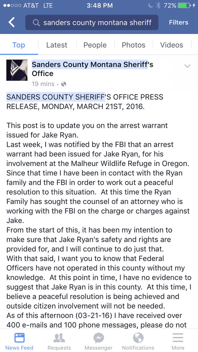 Montana sheriff issues statement about arrest warrant for Jake Ryan #oregonstandoff