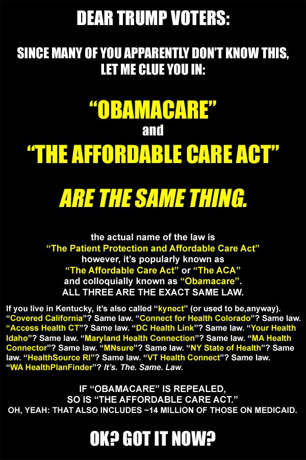 Wonder how many other people believe the same thing? Well, I guess that a lot of people in Kentucky honestly believed that Kynect had nothing to do with ACA when they elected Bevin either. A lot of Trump voters also didn't seem to take Trump very seriously during the campaign about his pledge to repeal PPACA.