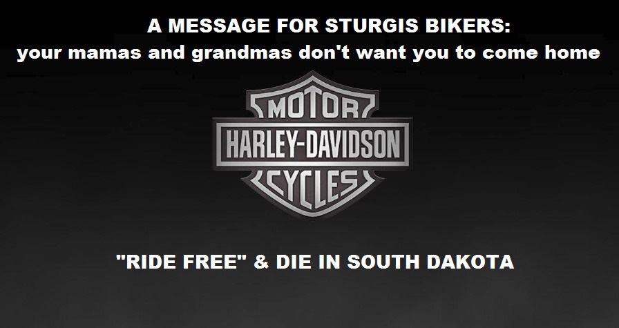 (42,025 posts)It is particularly unfortunate that Gov. Kristi Noem is a first class ignorant libertarian moron. There should be little doubt that there will be people who are going to get sick, suffer greatly, and some may die as a result of this gathering. And for what? A weekend at Sturgis. It is simply mind boggling.
