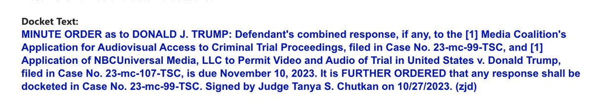 (602 posts)Contrary to the filing by NBC and the other media, the public does not have a "right" to see a TV broadcast of what happens in a courtroom.