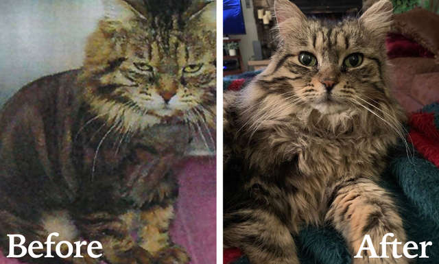 She is such a cutie. I wish my cat did that. What a difference in the before and after picture.