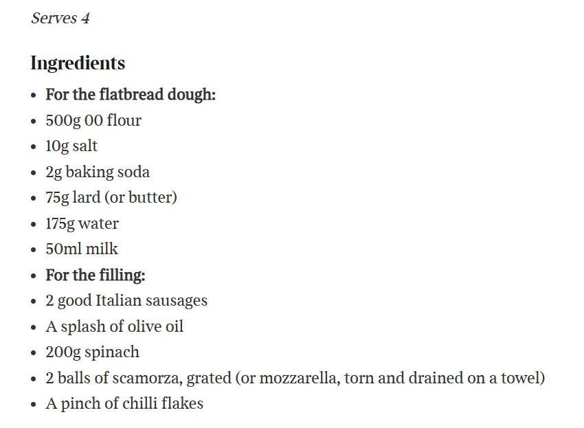 Charlie Hibbert shares his recipes for sausage, spinach and smoked mozzarella-stuffed flatbreads, potato and cheddar pie, and baked chicory and ham gratin