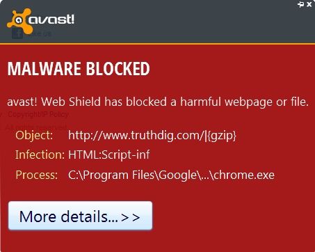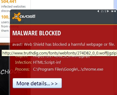 (20,582 posts)Well that shoots my theory all to heck, I thought maybe they were hijacking me to upgrade ... there must be something else. I can't afford extras right now so have just dumped avast and installed avg ... the Truthdig site is working fine for me now. I really liked avast though, hope you can get to the bottom of it.