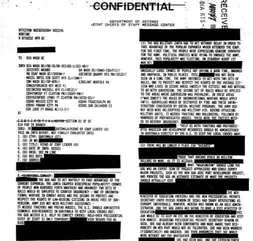 Earlier this year President Clinton apologised for the American involvement in Latin America's dirty wars after a thousand US Government classified documents revealed CIA training manuals for assassinations, deliberate attempts to hide or deny the genocide and direct involvement in military coups to topple reformist Governments. This was the era of the cold war and Reagan's fear of the Sandinista revolution in Nicaragua spreading. Anything was justified to contain the threat, including as Jonathan says about the US aid to the Guatemalan military:"They created a monster, which later they were powerless to control".