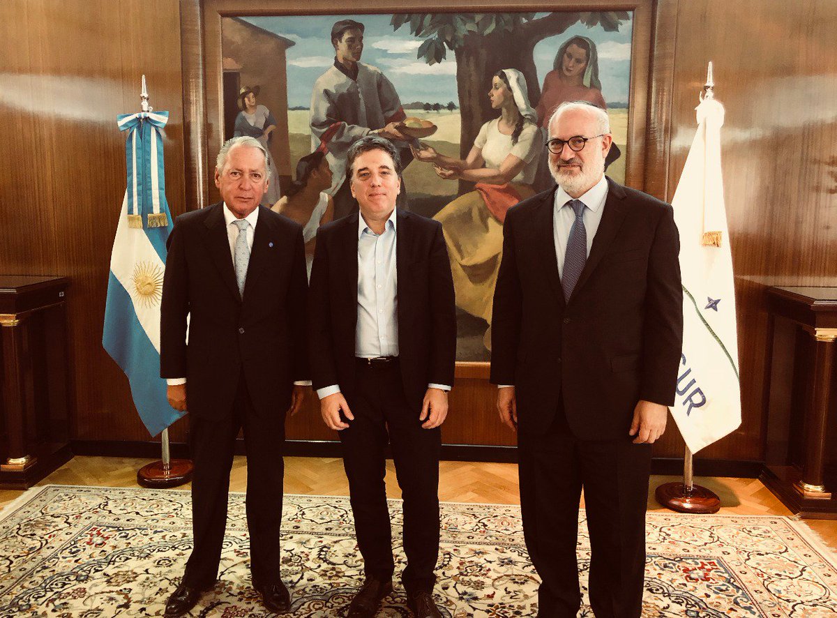 Inside joke: "Professor" Macri beams at his cousin (and top public works beneficiary) Ángelo Calcaterra, with former Economy Minister Nicolás Dujovne (who left Argentina after the economy imploded in 2018) smiling between them.