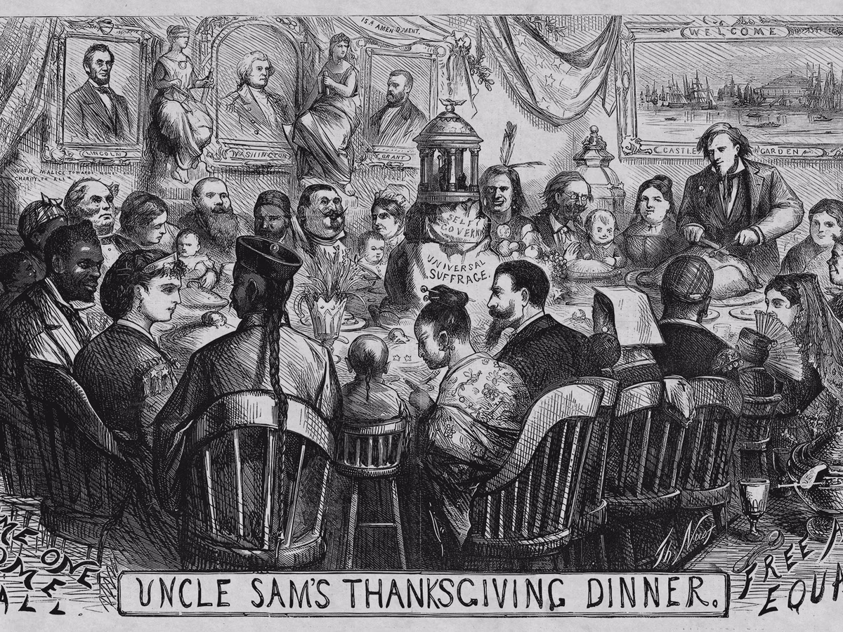 Uncle Sams Thanksgiving Dinner, by Thomas Nast, Harpers Weekly, 1869. (Source: Princeton University)