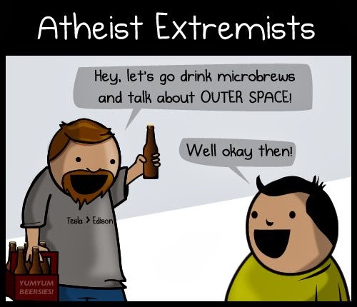 The extremists, on either side of the argument, are very similar to each other. They tend to be strident, bigoted bullies. They seem obsessed with bible quotes, which they both cherry pick to put down their enemies. The irony is that they are two sides of the same coin, vying for approval from the rest of us, with their "holier than thou", or "more atheist than thou" self-righteousness. The extremists are the enemy, not the atheist DUer who occasionally attends church with his wife, not the believer who stumbles into A&A with a message of unity.