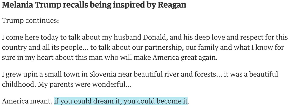 "Melania just plagiarized Trump's second wife Marla Maples."
