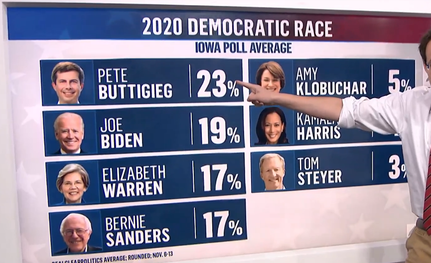It is of interest that Biden is 2nd in Iowa and NH and first elsewhere. Further, in Iowwa the two moderates are on top and the left candidates are on the bottom. Try combining Pete and Joe one one hand and Warren and Sanders on the other.
