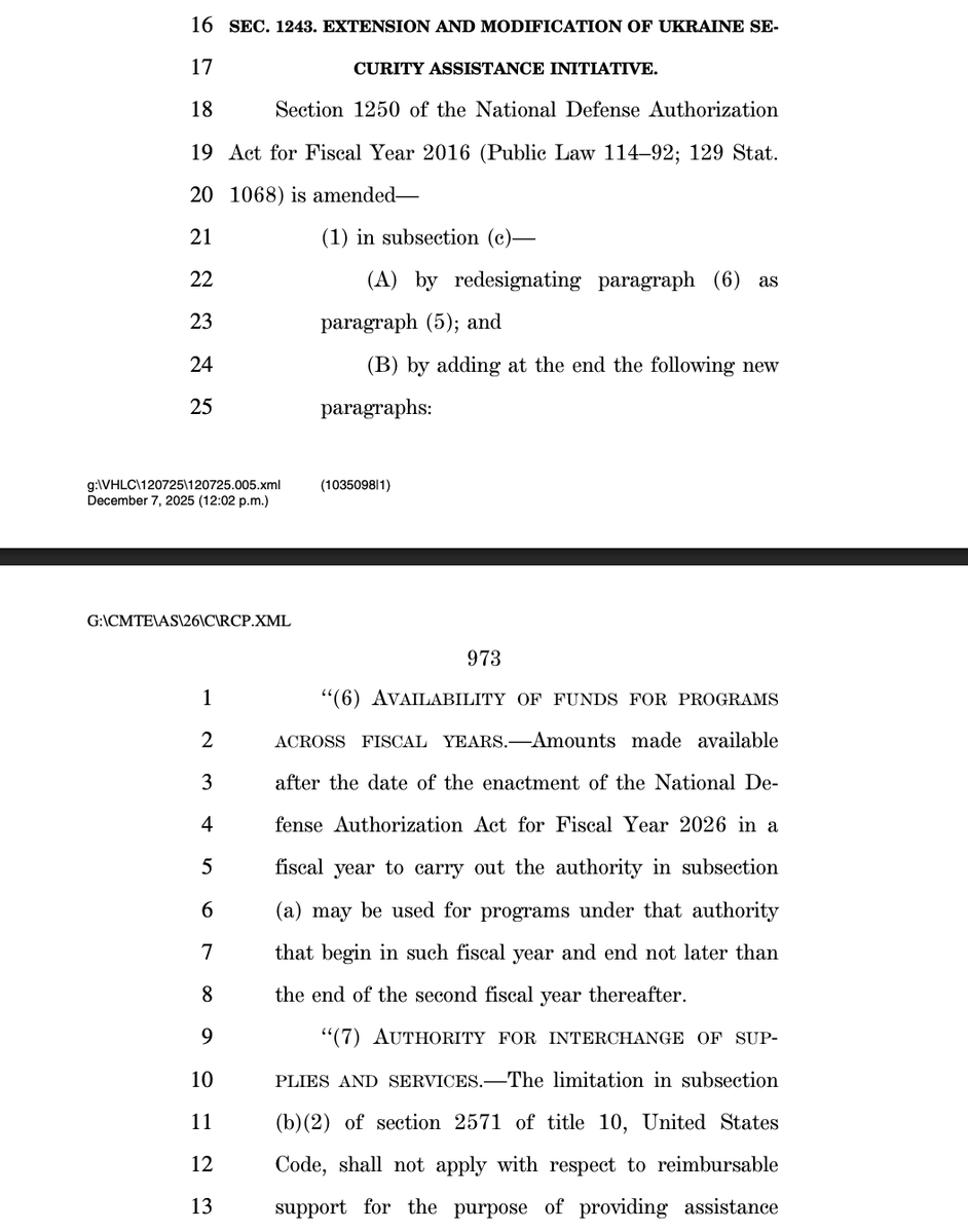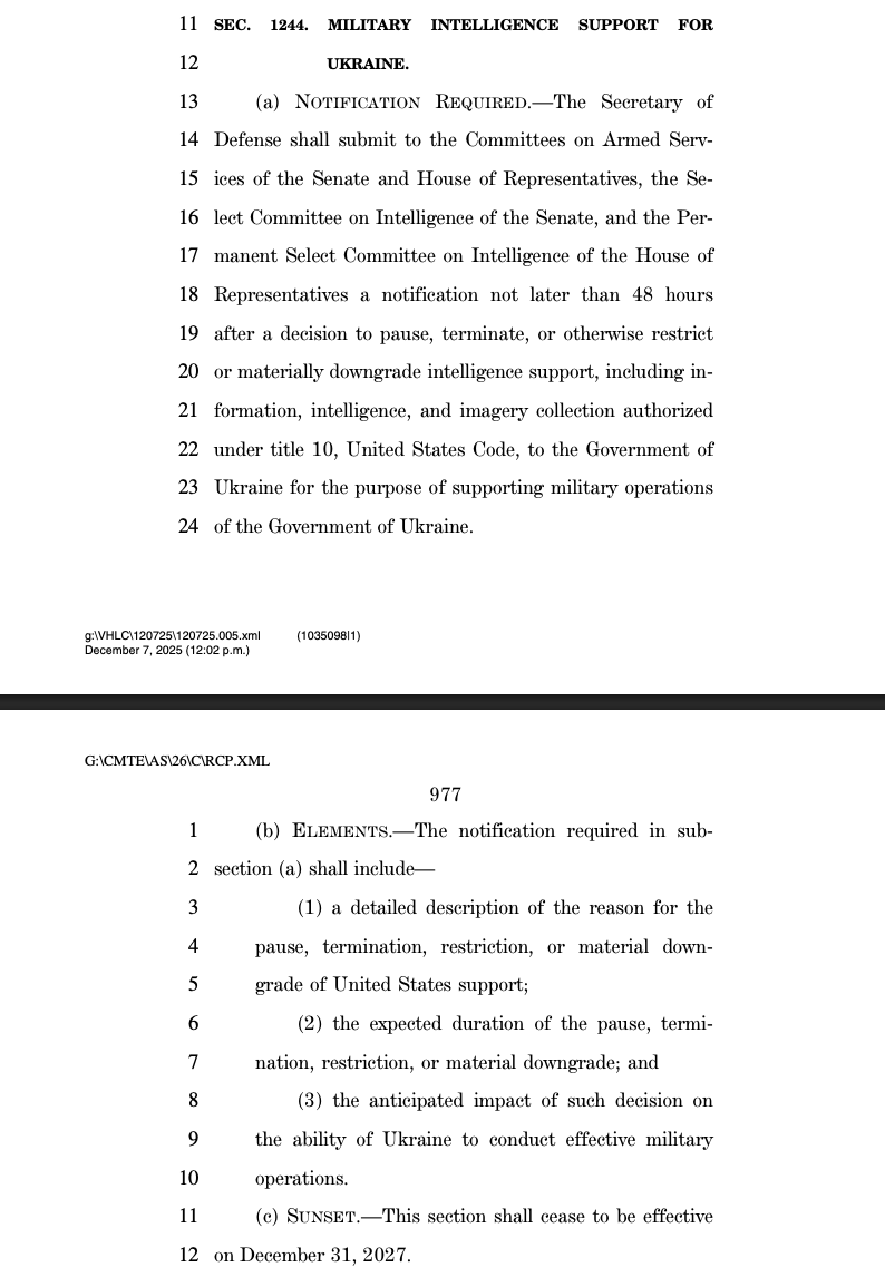 Repeatedly this year, the Trump admin has threatened to end intelligence support for Ukraine. Sec. 1244 creates new oversight mechanisms requiring Congress to be notified immediately if that happens, signaling there would be serious backlash to such a move.