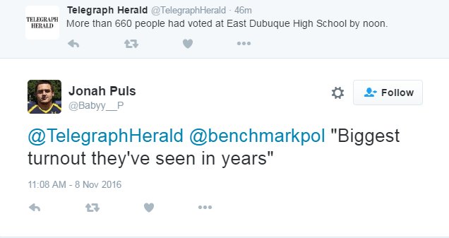 Big turnout in Dubuque, Iowa. Dubuque is a Dem +11 county in Iowa. http://benchmark.shareblue.com/iowa/